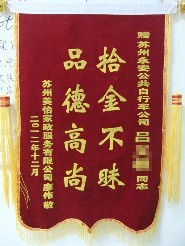 12月2日,我們公共自行車運(yùn)營員工呂師傅在蘇雅路天翔廣場附近撿到錢包一個(gè),內(nèi)有人民幣、銀行卡等。呂師傅及時(shí)把它交給園區(qū)湖西派出所,在派出所工作人員的幫助下,找到了失主。失主認(rèn)領(lǐng)后非常感動(dòng),他特制了錦旗來感謝呂師傅。 拾金不昧是我們公司的優(yōu)良傳統(tǒng),我們公司已涌現(xiàn)出無數(shù)個(gè)呂師傅,真是贈(zèng)人玫瑰,手留余香。我們?yōu)橛羞@樣的好員工感到驕傲。