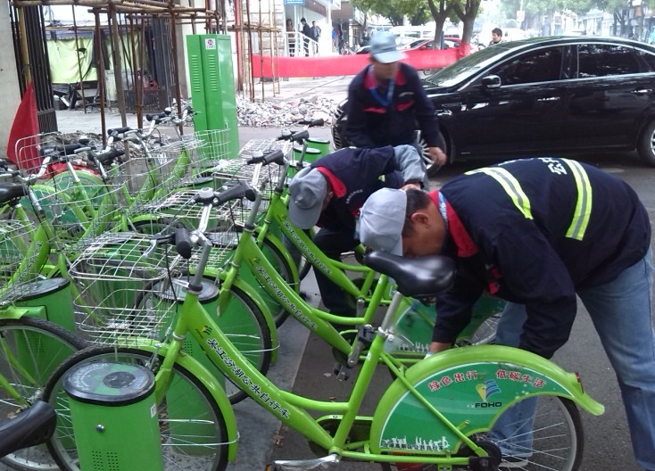 汾湖公共自行車維修中心對公共自行車進行維修保養