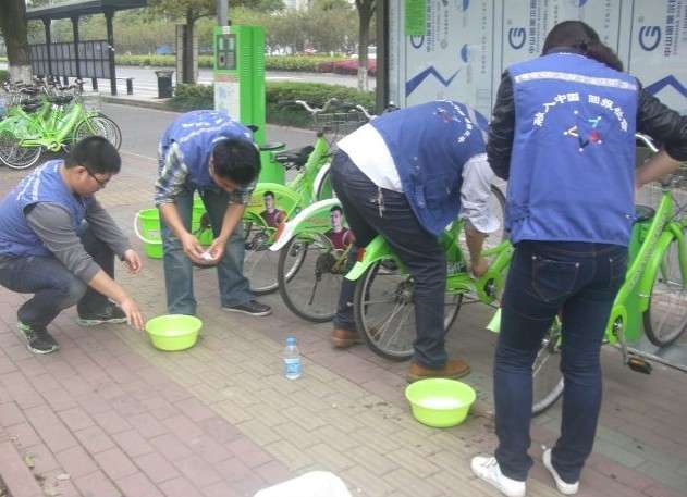 4月19日蘇州三星電子液晶顯示器有限公司組織員工對蘇州工業園區公共自行車進行保潔和檢修?;顒蝇F場大家不怕苦,不怕臟,積極參與其中。公共自行車在大家一番“照顧”下,煥然全新,以全新的面貌為市民服務。