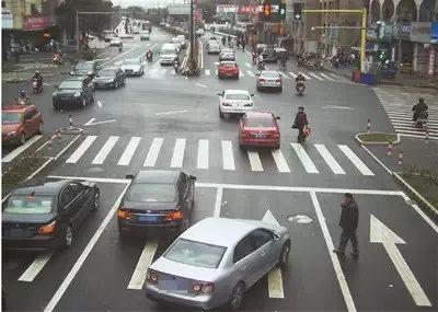 遇前方機動車停車排隊等候或者緩慢行駛時,在人行橫道、網狀線區域禁止停車,如果在排隊通行時前方距離不夠,后車應在人行橫道或網格線外等待,不得壓線停車。