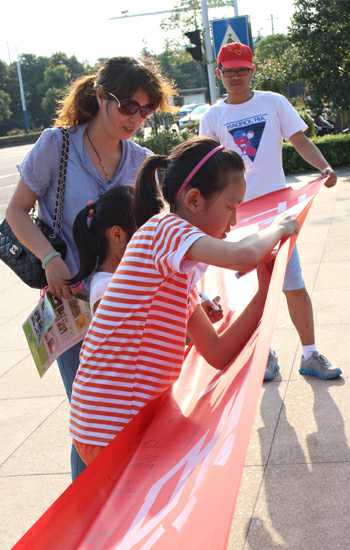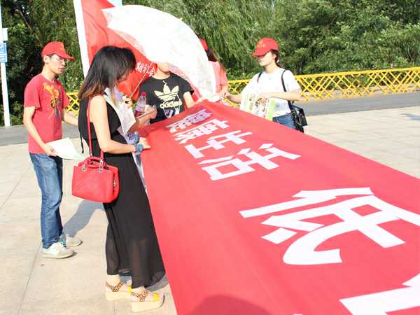 當日下午3時,實踐小隊騎著由永安公司提供的綠色公共自行車從河海大學北門出發(fā),途經(jīng)紫荊公園、中華恐龍園、新北萬達廣場。期間實踐小隊,進行了發(fā)放宣傳單、百人簽名等活動,截止晚上8點,活動圓滿結(jié)束。