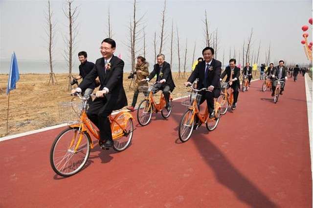 2012年3月26日,環太湖風景路建設啟動儀式在吳江市與浙江省湖州市吳興區交界處舉行,參加啟動儀式的國家住建部總工程師陳重、江蘇省副省長何權、浙江省副省長陳加元等領導在蘇州市副市長吳江市委書記徐明、吳江市代市長梁一波的陪同下,到吳江濱湖新城生態公園體驗公共自行車。