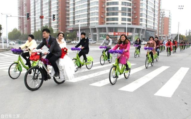 據了解,租借公共自行車當婚車是安陽首例。市公共自行車服務中心工作人員表示,他們十分支持這種綠色環保的結婚形式,也提倡市民出行多用公共自行車。