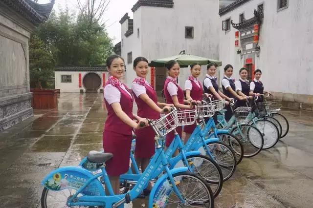 徽州公共自行車助力唐模迎接合福高鐵隨著合福高鐵通車時間的日益臨近,6月3日,由黃山市政府與南昌鐵路局聯(lián)合主辦的“高姐帶你游黃山”活動拉開序幕。合福高鐵百家媒體及高姐等一行在3號當日乘高鐵抵黃山北站,在黃山召開合福高鐵推介會,并于當天下午赴唐模景區(qū)采風。到達唐模后,合福高鐵百家媒體體驗團與高姐一行依次游覽了唐模水街、高陽橋、小西湖等景點,并重點參觀了唐模法國家庭旅館。綿綿細雨中,她們漫步在唐模,行成了一道獨特的顏值風景線!本次活動使用的公共自行車堪稱活動的一大亮點,清新美觀的公共自行車、品貌端莊的高姐與古色古香的唐模鎮(zhèn)構(gòu)成了一副唯美的畫卷。