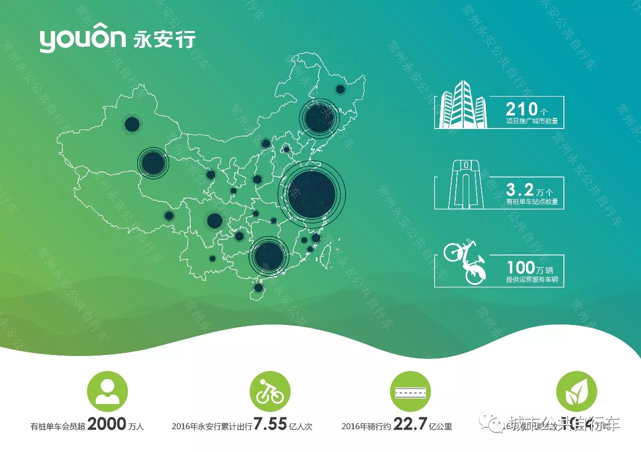 好在第三個(gè)項(xiàng)目終于盈利,讓公司渡過(guò)了危機(jī),并在2012年獲得了風(fēng)投的2000萬(wàn)元資金注入。有了資金的支持,永安行順勢(shì)將有樁共享單車模式迅速?gòu)?fù)制到全國(guó)200多個(gè)城市,北起黑龍江黑河市,南至海南省海口市,東起上海松江,西至新疆阿克蘇,都有永安公共自行車系統(tǒng)。