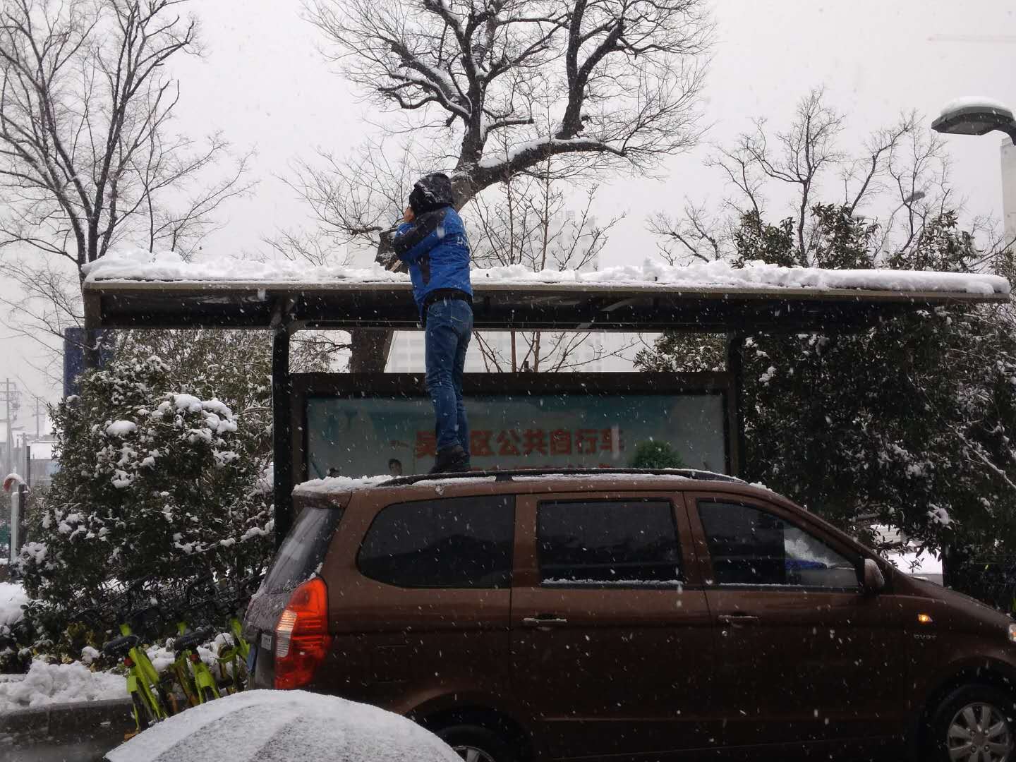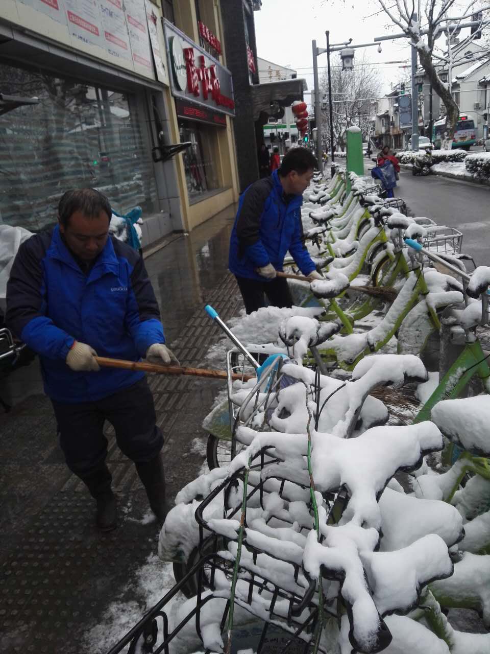 2018年1月25日,蘇州下起了暴雪,斷斷續續持續至28日的清晨。路面上、公共自行車站點上的積雪和地面冰塊給市民的出行帶來了不便。25日中午12點,蘇州公共自行車管理中心發布了站點停運通知。26日起,永安行蘇州分公司由管理層帶隊,全體工作人員,在公共自行車系統停運期間,早早來到公司奔赴一線清掃積雪、檢查站點樁位、車輛情況。為后期站點開通,保障廣大市民騎行安全,做好準備工作。