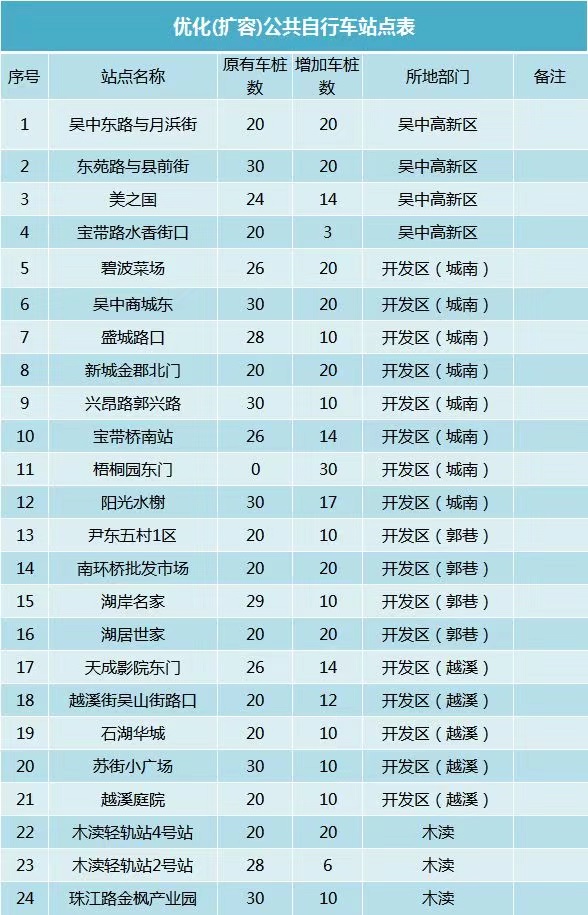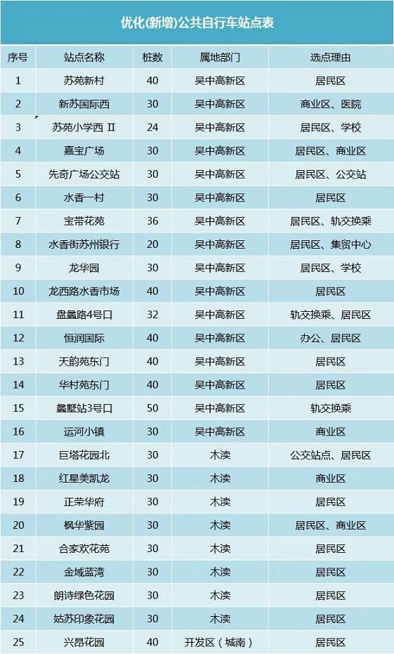 吳中區(qū)共建設(shè)站點504個、設(shè)車樁14320個、投放公共自行車12100輛,同時已更新車輛3200輛,各項數(shù)據(jù)均居全市前列。